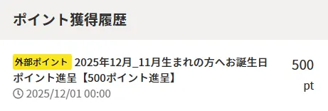 (2)マイページへ遷移後、下部へスクロールしますと「ポイント獲得履歴」の記載がございます